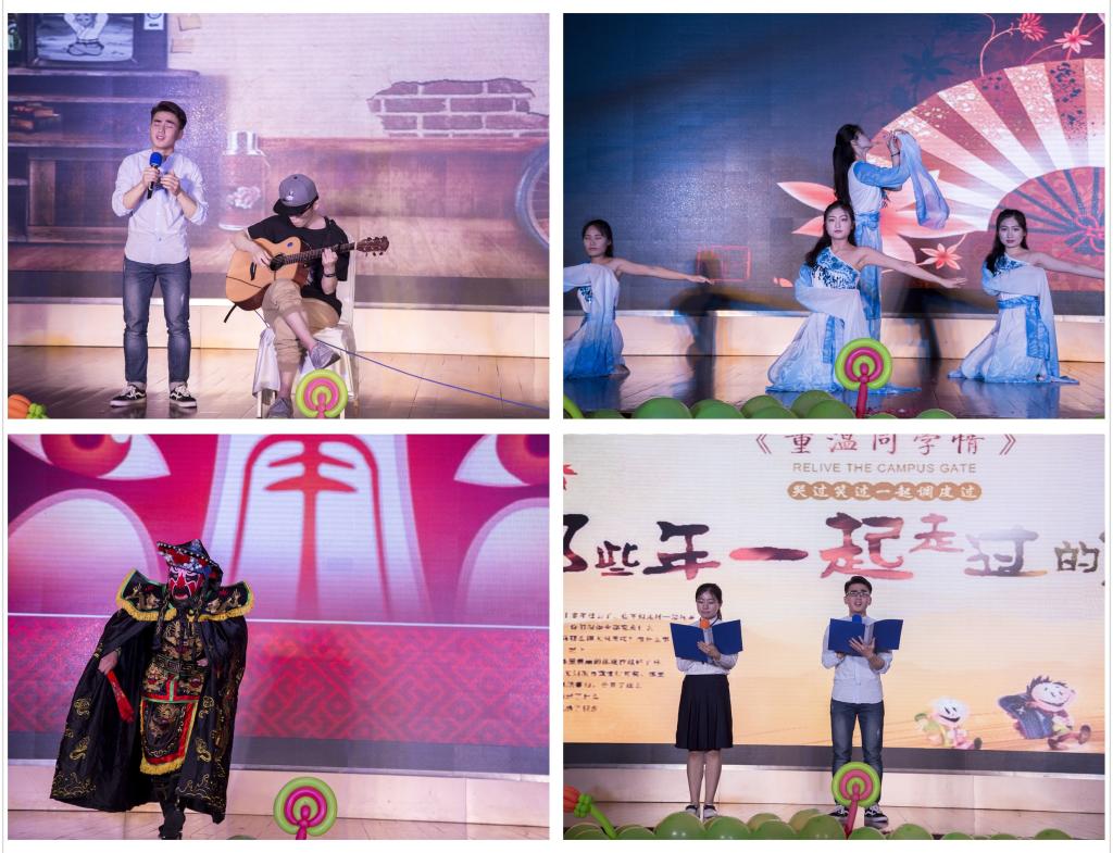 随后,领导和93级校友们欣赏了由学院学生带来的精彩文艺演出。扇子独舞《苏堤春晓》的优美舞姿让观众仿佛身临苏堤的美景;吉他弹唱《成都》勾起了校友在连云港这座城市的青葱回忆;古典舞《卷珠帘》带动观众在玉环光转中聆听时光的声音;国粹《川剧变脸》则让观众感受了中国传统文化的博大精深;朗诵《同学颂》让校友重温或笑或泪、至今不忘的共同画面。此外,宴会期间穿插了神奇魔术、可爱小丑、校友唱歌等互动环节,一次次将晚会气氛推向高潮现场,现场掌声不绝。