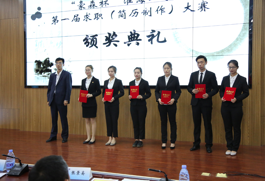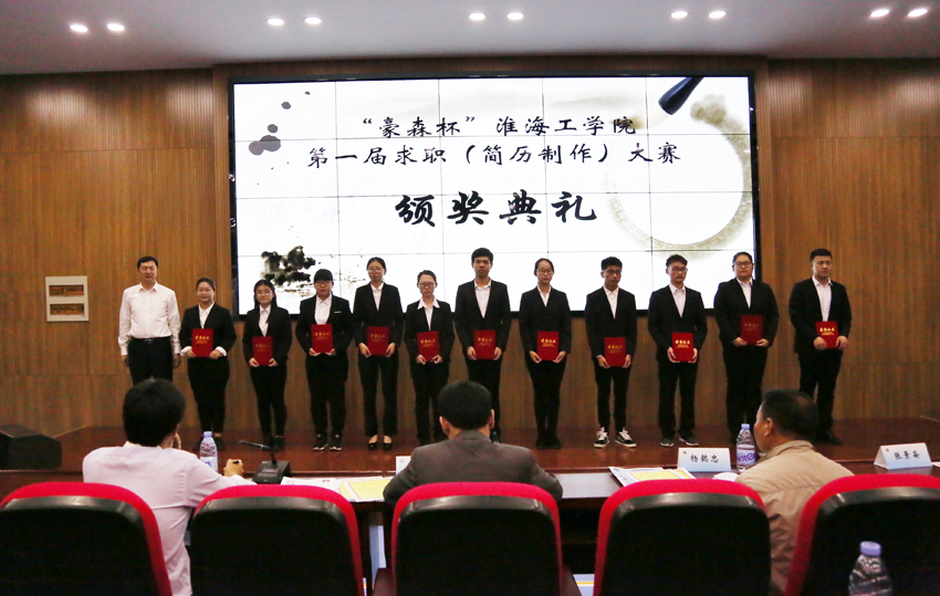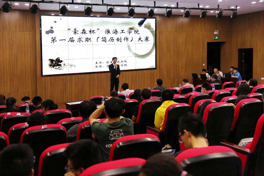 5月23日下午,由校招生与就业处主办、我院承办的“豪森杯”淮海工学院第一届求职(简历制作)大赛决赛在宋跳校区敦行楼201报告厅上演。江苏豪森药业股份有限公司人力资源总监何莹、连云港中复连众复合材料集团有限公司人力资源部总监杨懿忠、太阳雨集团有限公司人力资源部总监张景斋、连云港杰瑞电子有限公司人力资源部招聘主管周备备担任决赛评委,院长樊华、校招生与就业处副处长姜兵、院党委副书记、副院长万金店等出席活动现场。