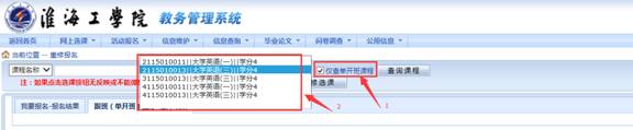 注意(1)学生已在网上报名成功的课程,务必不要再填报手工报名表,以免出现重复数据;(2)本二学生原则上选择苍梧校区教学班;(3)对于必修课程的替代重修,各相关学院应按照《淮海工学院课程替代与置换管理办法》,严格控制和审核。
