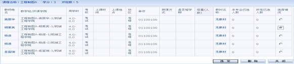 第四步、选择需要重修报名的课程,在开课班级中选择一个与已有上课时间不冲突或冲突较少的教学班。