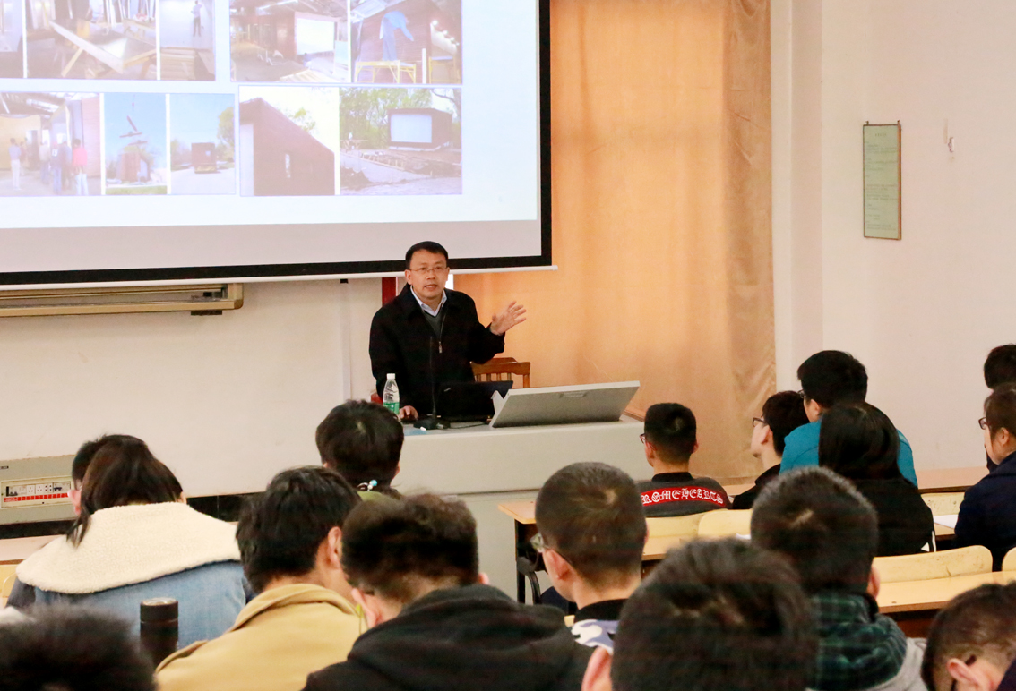 樊院长向同学们介绍了田安国教授,并对田教授的到来表达了热烈的欢迎。田教授从建筑工业化的概念,优势与特点,国内外现状、未来发展前景,建筑工业化优缺点和解决办法这五个方面做了详细的解读。田教授结合我市具体情况,讲解了连云港市建筑产业化发展面临现状。田教授还指出,目前建筑工业化与建筑企业原有的运行模式相差较大,成本偏高,工业化投入巨大且回报缓慢,面临泡沫及库存压力加大了建筑产业化推进的不确定性,尤其是缺乏技术管理复合型人才,同学们应该多做技术储备,抢占先机。
